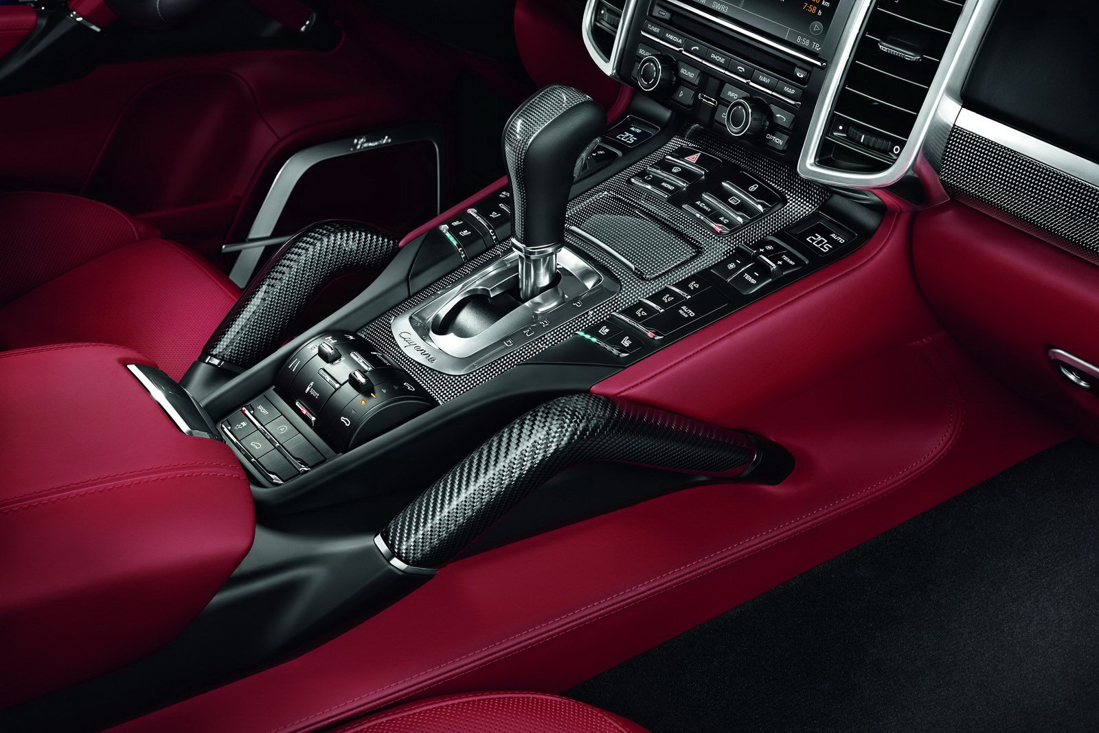carbon fiber trims used on the dashboard, the elevated center console