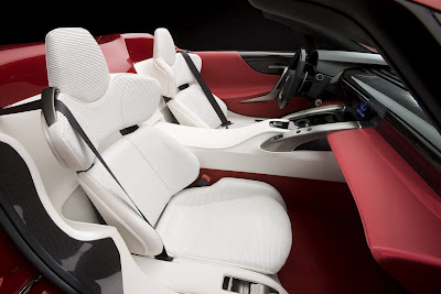 Lexus unveiling a roadster version of last year's LF-A sports car concept. It equipped with a 500+hp 5.0l V10 engine unit as the LF-A coupe which was unveiled in 2007. Other then removed the roof and some structural reinforcements, the new roadster also install a speed adaptive rear wing.See more photo below.