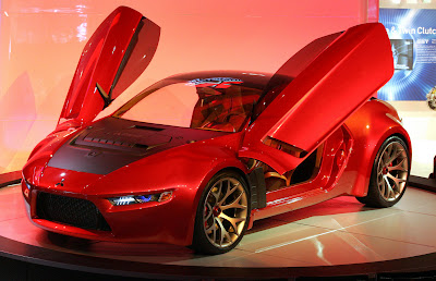 Concept-RA's deep red exterior hue graphically accentuates the coupe's fluid, muscular body lines, and offsets a matte black engine hood that helps impart the vehicle's strong mechanical flavor. The interior has been developed to show a fusion of tradition with leading-edge touches. The cockpit's wraparound control layout uses minimal visual instrumentation and optimizes the switch and control layout. This reduces the driver's physical and mental workload, allowing full concentration on driving. The interior also makes extensive use of fine-quality natural materials in a design that delivers the utmost control, confidence, and vehicle involvement to the driver.